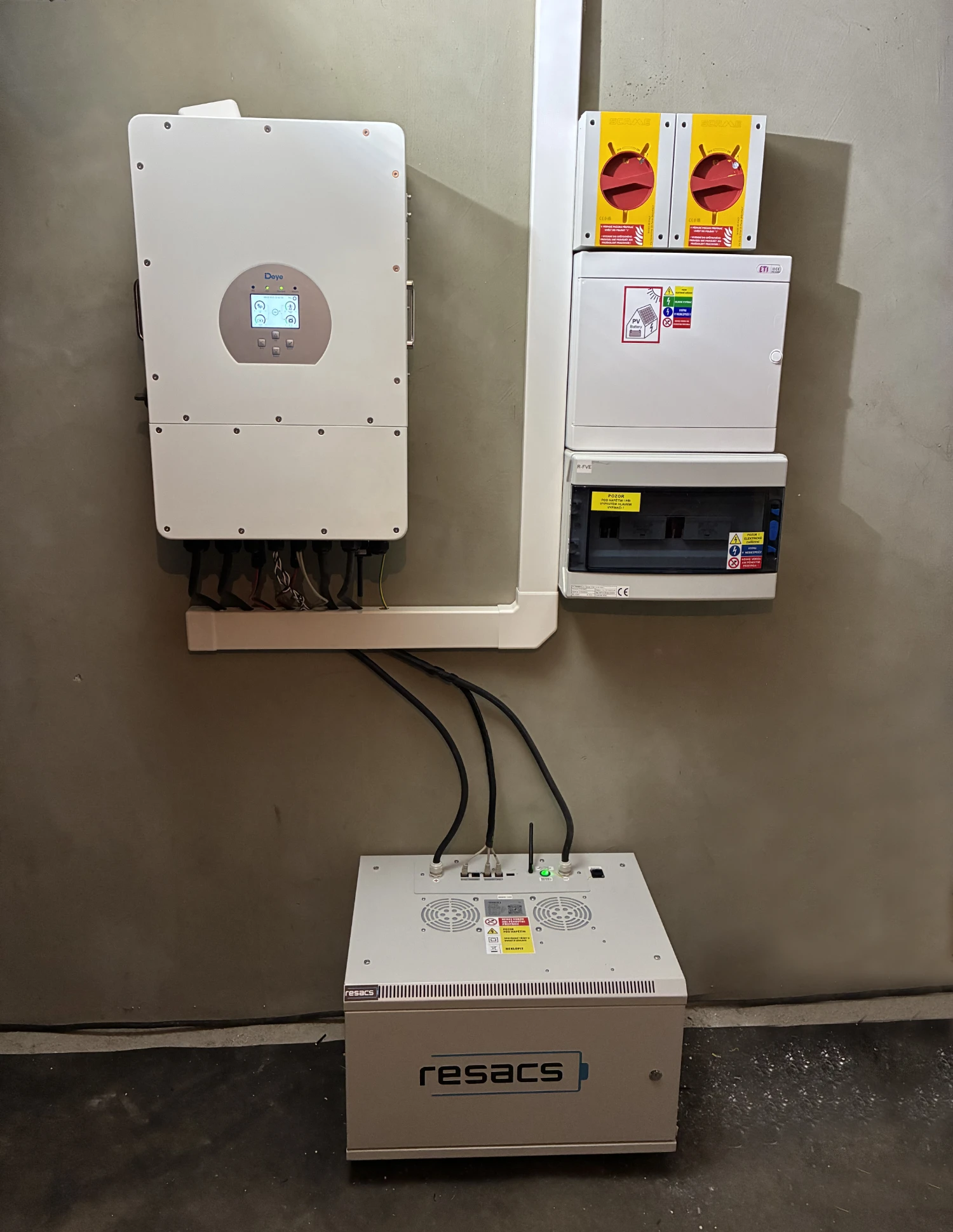 Zákazníkovi, jsme na základě jeho požadavku vypracovali původně nabídku včetně energetického auditu na sestavu s baterií a střídačem zn. Alpha Storion, což je renomovaná značka, která v mnohém svými parametry překonává konkurenci. Především z dlouhodobého hlediska životnosti baterie. Současně jsme mu nabídli sestavu od českého výrobce baterií Resacs v kombinaci se střídačem značky Deye. Díky příznivé ceně a dalším parametrům se zákazník rozhodl pro sestavu s českou baterií zn. Resacs. Výhodou je poskytování servisu v České Republice a nadstandardní patentovaný samohasící systém.